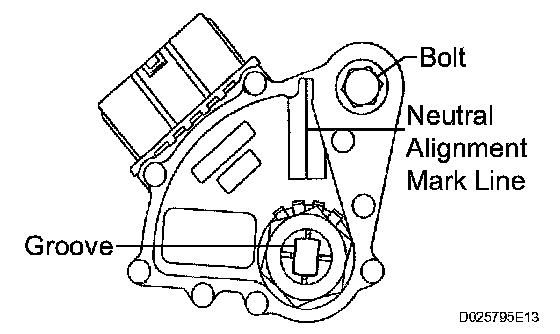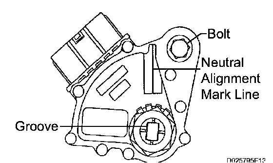 g) Align the neutral alignment mark line with the switch groove, and tighten the adjusting bolt.