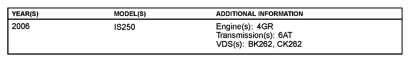 Some customers with 2006 model year IS 250 vehicles may experience a M.I.L. "ON" condition with DTC P0751 (Shift Solenoid "A" Performance - Shift Solenoid 51) stored (possibly with DTCs P2714 or P0894). The Engine Control Module (ECM) (SAE term: Powertrain Control Module/PCM) logic for DTC P0751 has been revised to prevent a false M.I.L. "ON". Follow the repair procedure below to determine if recalibration of the ECM (PCM) is required.