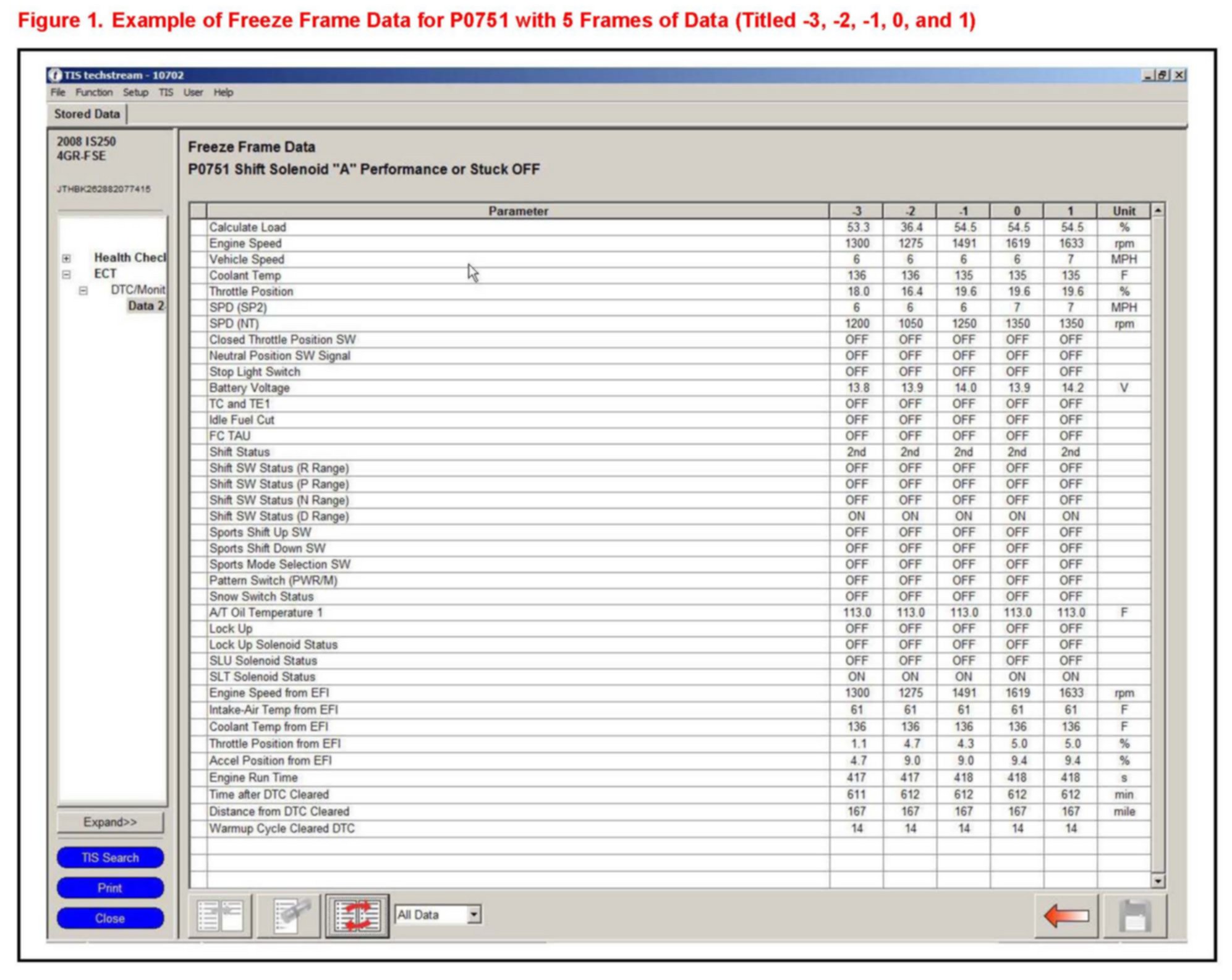 The DTC that is stored first will have 5 frames of Freeze Frame Data stored (see Figures 1 and 2).