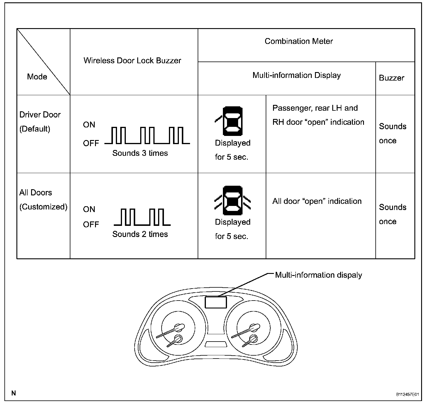 Driver door unlock default setting When the switches are pressed and held for 5 seconds, the entry door unlock mode changes in the order.driver door mode, one door mode, doors on one side mode, all door mode.
