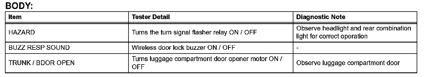 c. Enter the menus.DIAGNOSIS / OBD/ MOBD / BODY / ACTIVE TEST.