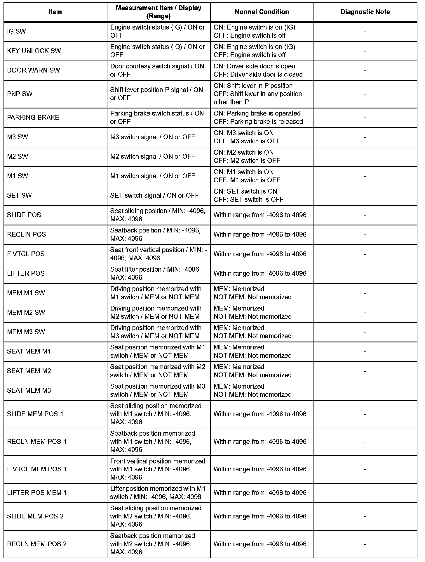 READ DATA LISTHINT: Using the intelligent tester's DATA LIST allows switch, sensor, actuator and other item values to be read without removing any parts.Reading the DATA LIST early in troubleshooting is one way to save time.