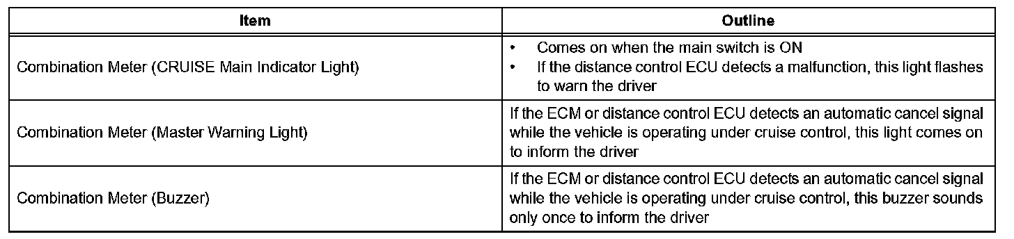 c. The constant speed control mode is designed to maintain a constant cruising speed. The vehicle-to vehicle distance control mode is designed to control cruising at a constant speed function, deceleration cruising function, follow-up cruising function, and acceleration cruising function.