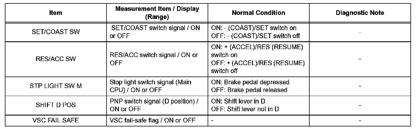 HINT: Using the intelligent tester's DATA LIST allows switch, sensor, actuator, and other item values to be read without removing any parts. Reading the DATA LIST early in troubleshooting is one way to save time.