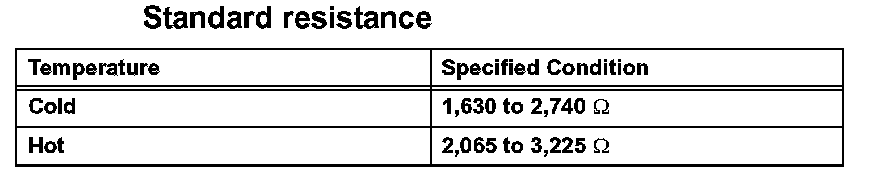 If the resistance is not as specified, replace the sensor.