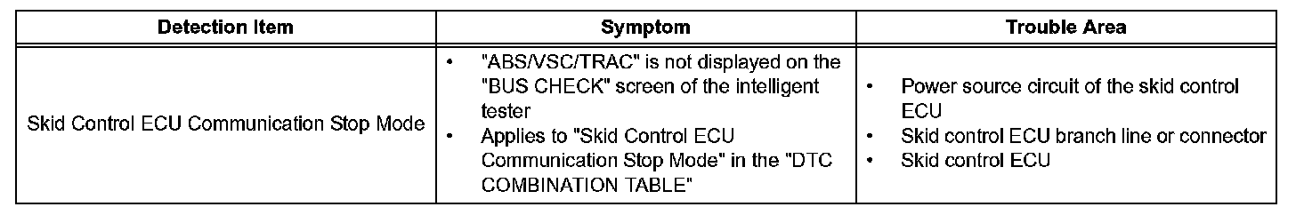 Skid Control ECU Communication Stop ModeDetection Item: