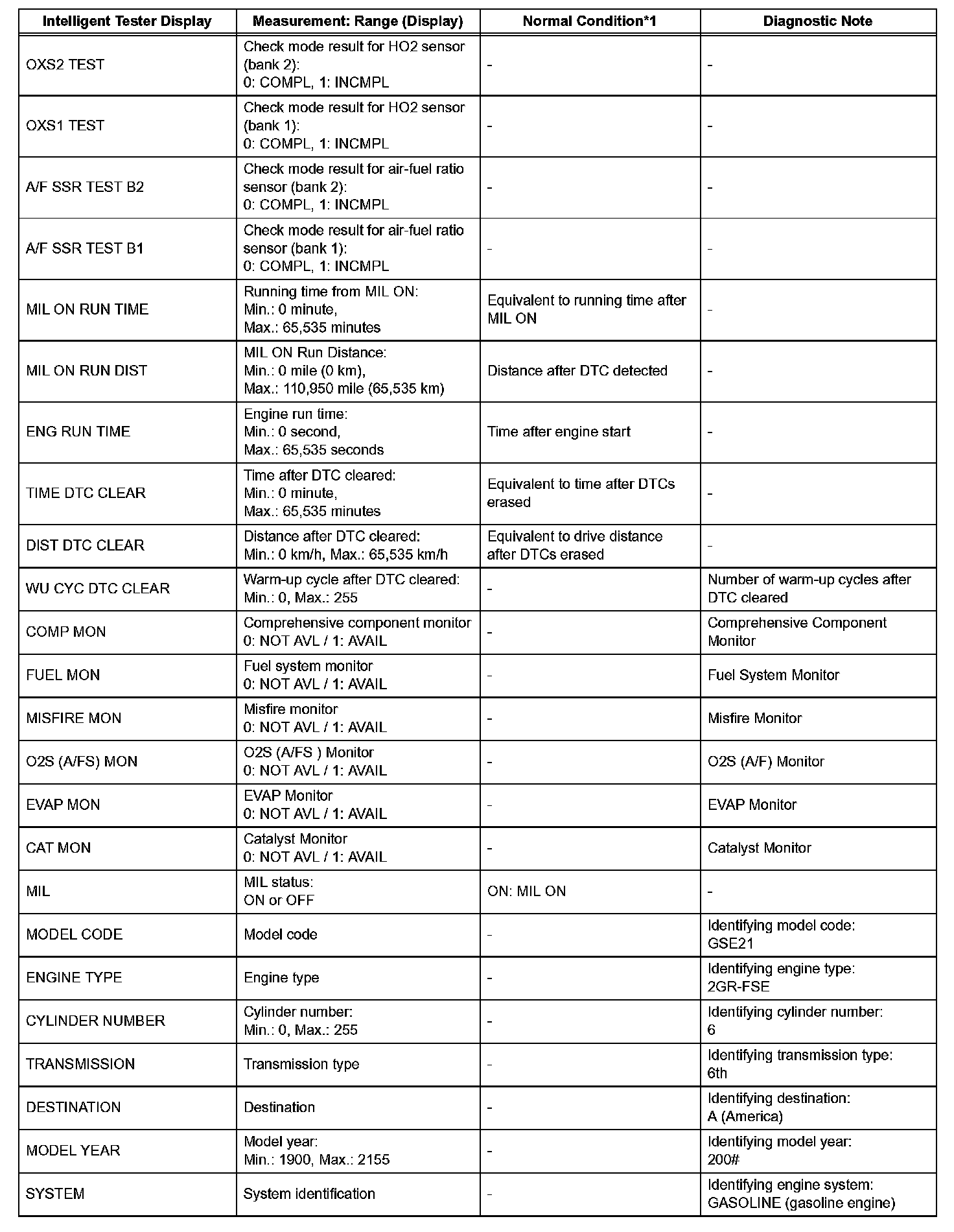 - *2: DATA LIST values are only displayed when performing the following ACTIVE TESTs: VVT B1, VVT B2, VVT EX B1 and VVT EX B2. For other ACTIVE TESTs, the DATA LIST value will be 0.