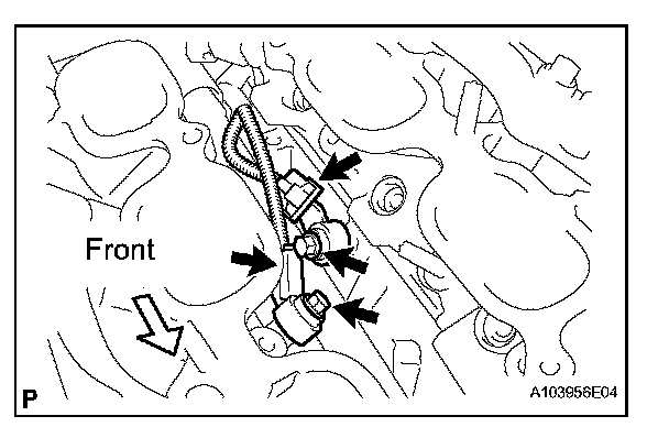 a. Install the 2 knock sensors so that they are horizontal as shown in the illustration. Then install the 2 bolts.