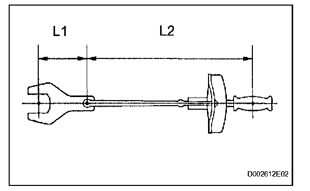 1. Use the formula below to calculate special torque values for situations where SST or an extension tool is combined with a torque wrench.