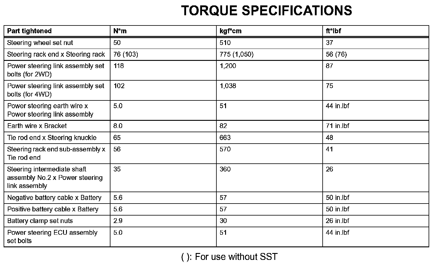 Power Steering-Torque Specifications: