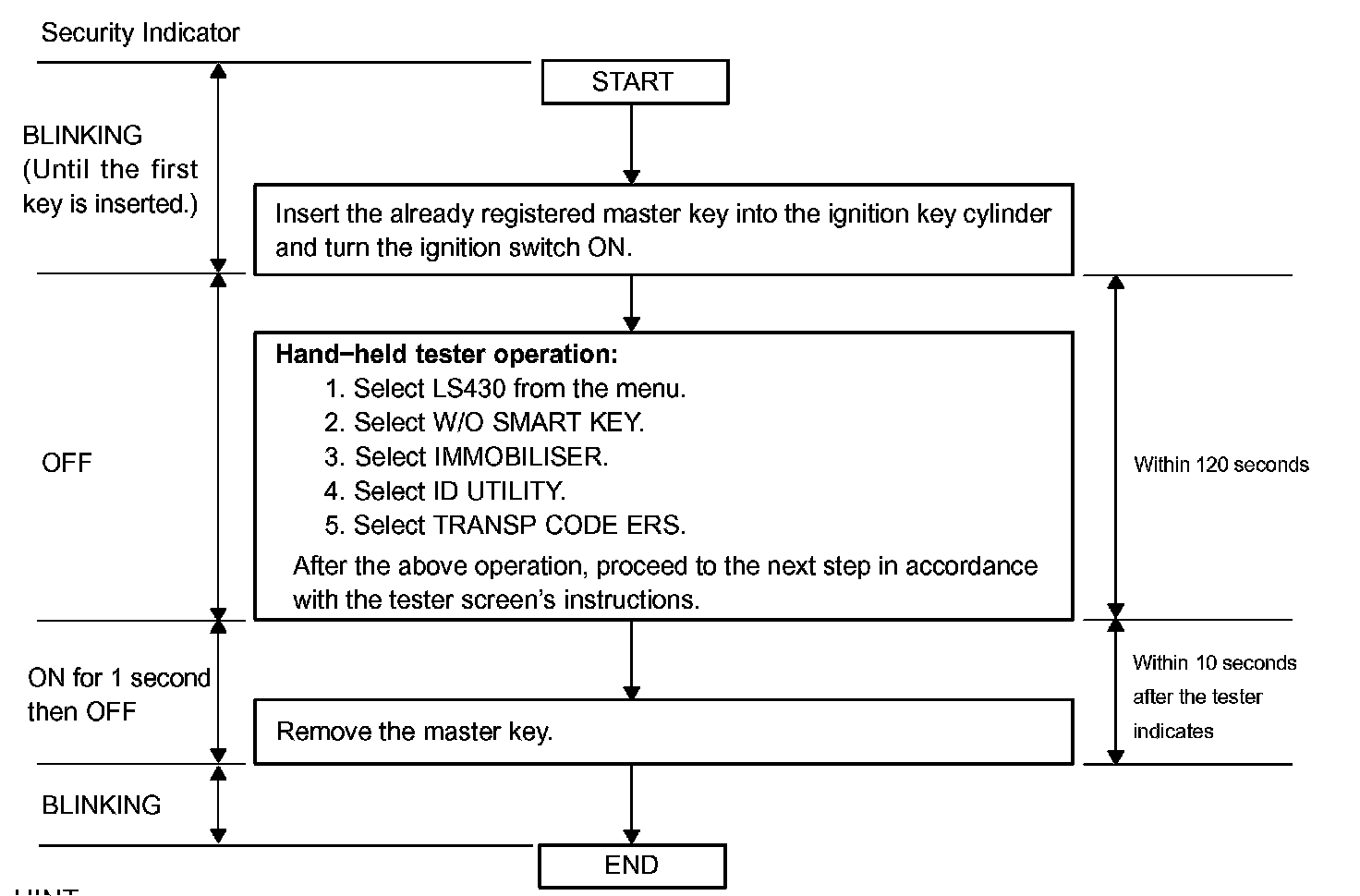 HINT: The automatic key code registration mode can be forced to end when at least 1 key code (immobilizer code) for the master key has been registered.