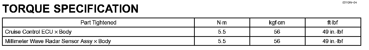 Cruise Control-Torque Specification: