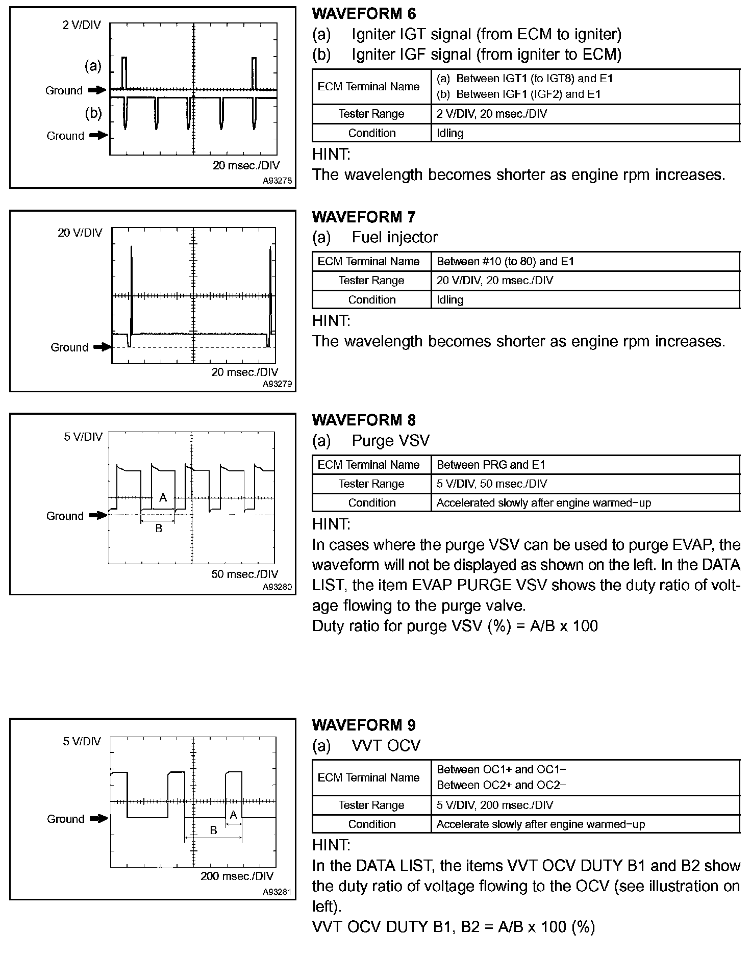Oscilloscope Waveforms 6 - 9:
