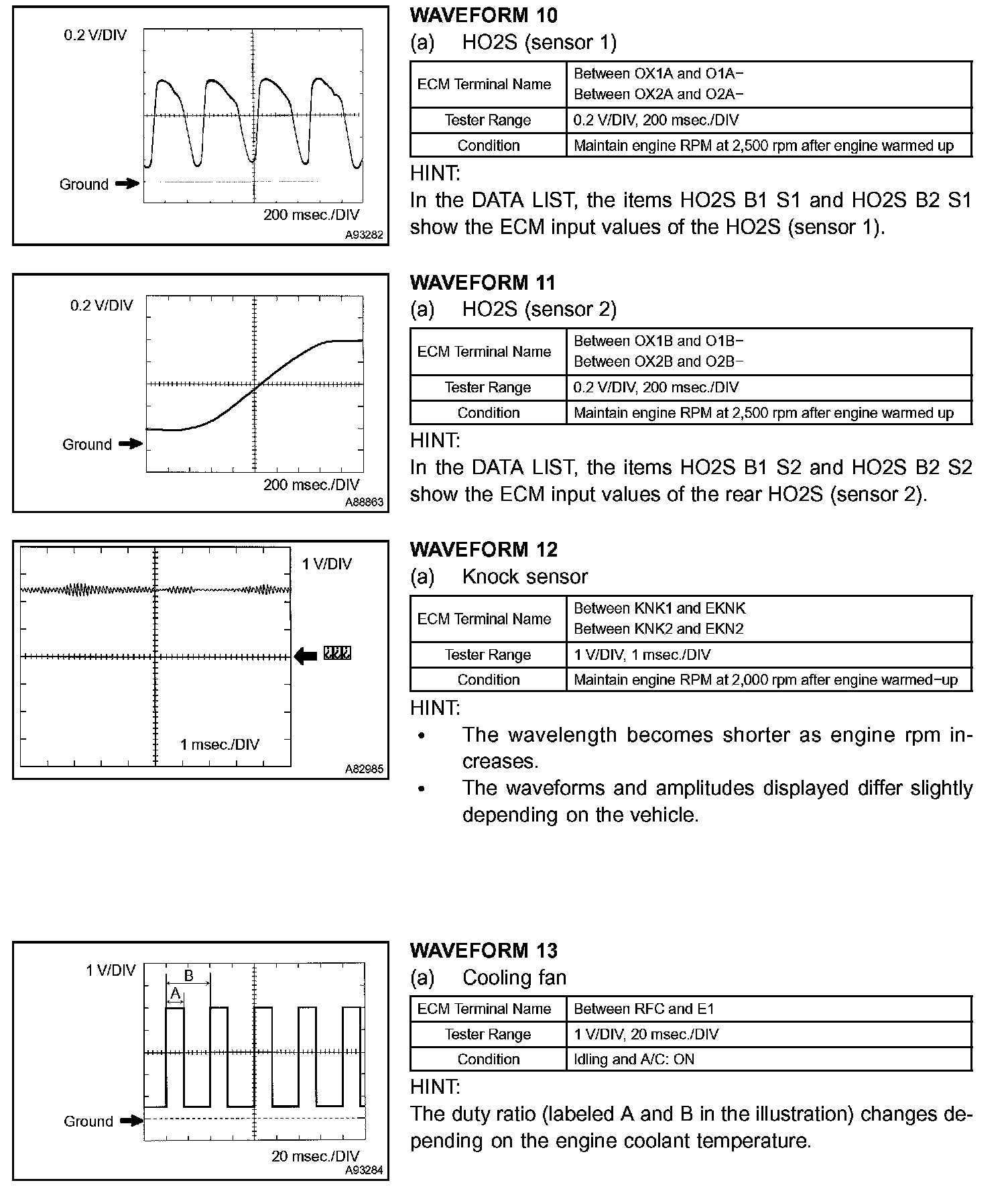 Oscilloscope Waveforms 10 - 13: