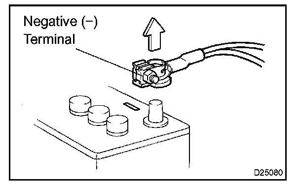 NOTE: When disconnecting the battery negative (-) terminal, initialize the following system after the terminal is reconnected.