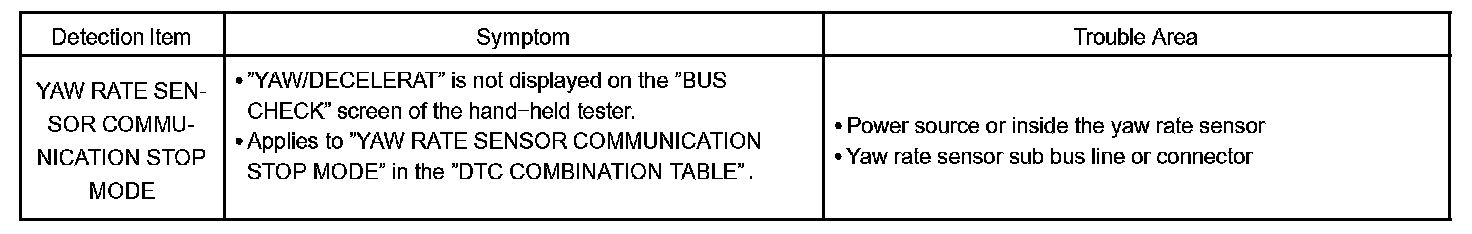 YAW RATE SENSOR COMMUNICATION STOP MODE