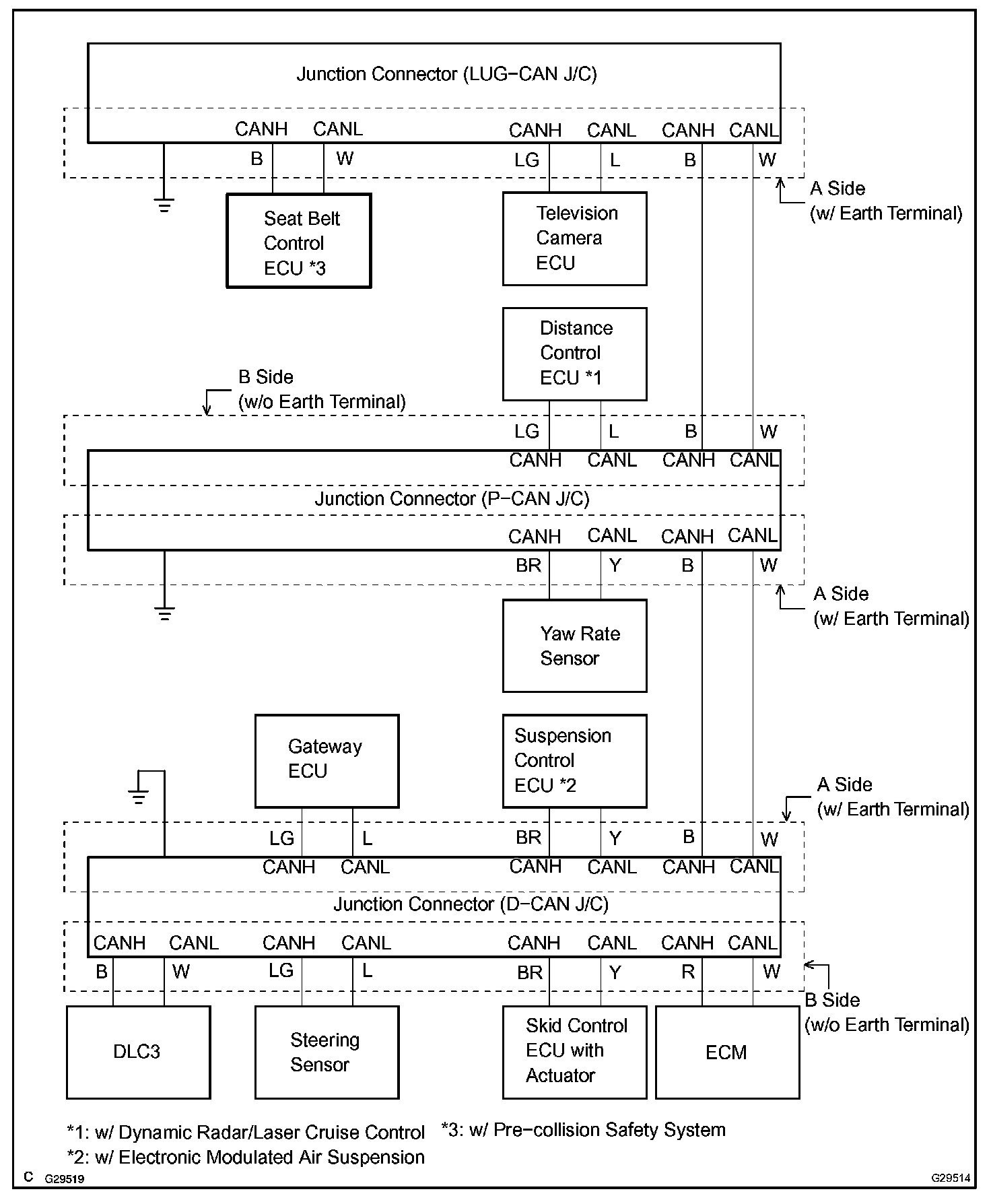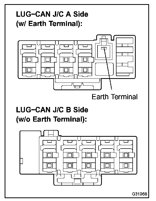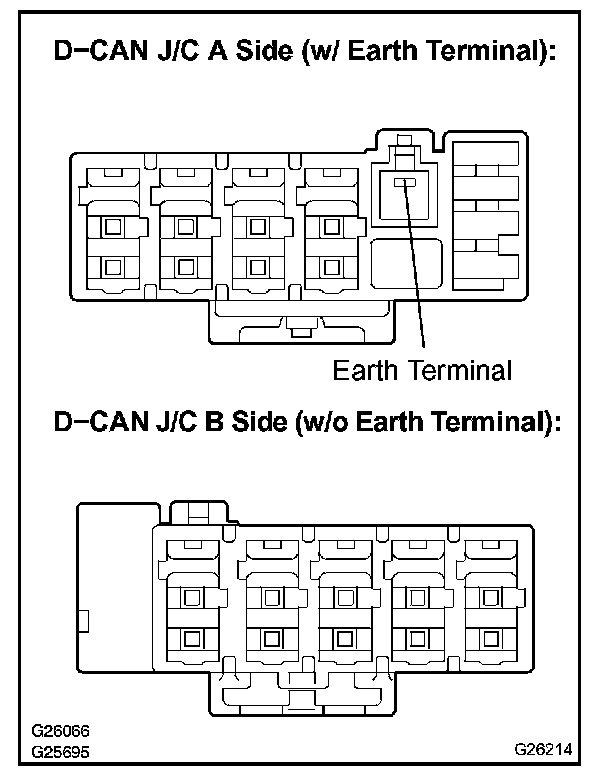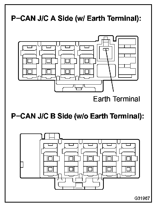 - The connectors connected to the CAN J/C can be distinguished by the colors of the bus lines and the connecting side of the connector.