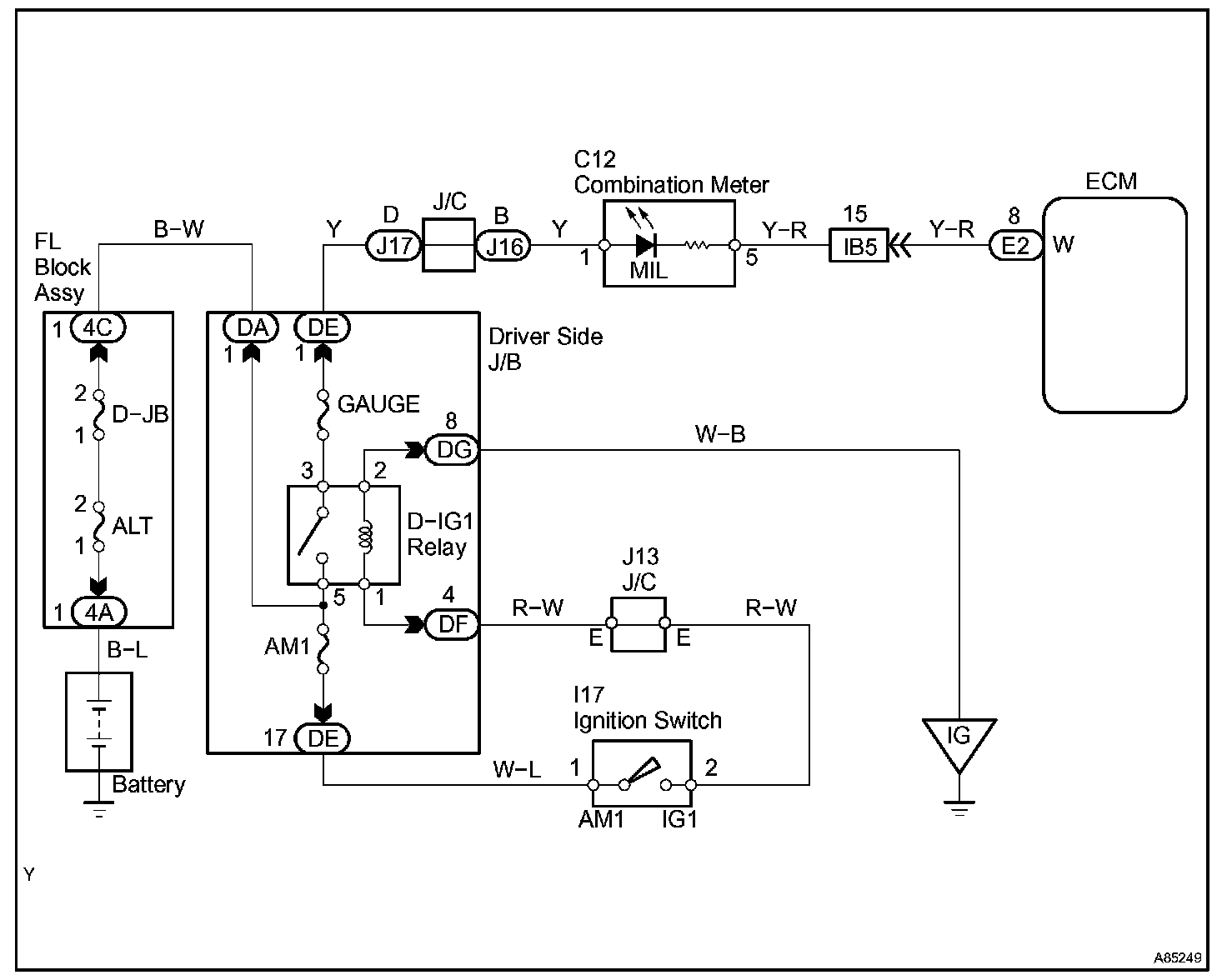 The Malfunction Indicator Lamp (MIL) is used to indicate the ECM's detection of a vehicle malfunction. The instrument panel GAUGE fuse provides the circuit with power and the ECM provides the circuit ground that illuminates the MIL.