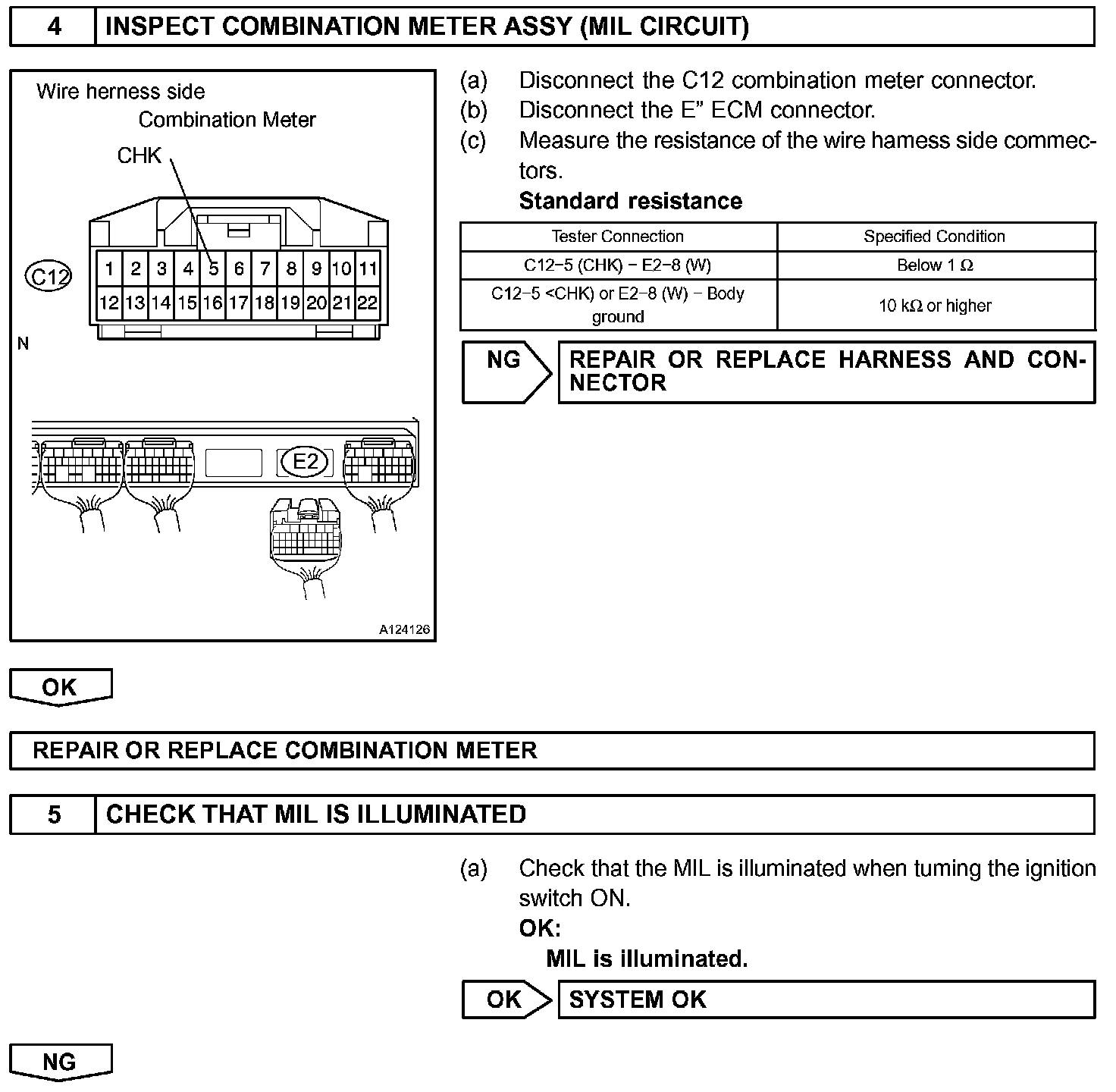 MIL operations should be checked visually: The MIL should be illuminated when the ignition switch is turned ON. If the MIL is always ON or OFF, use the hand-held tester and follow the procedures below to determine the cause of the problem.