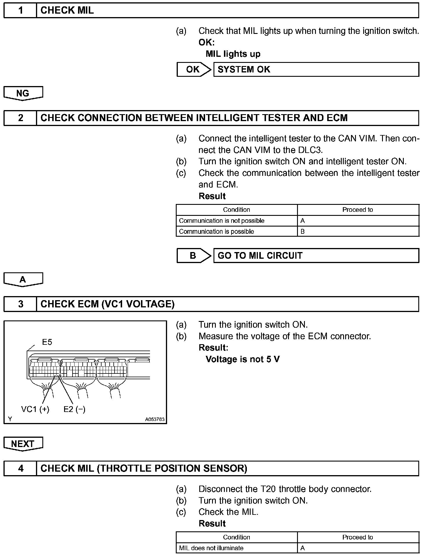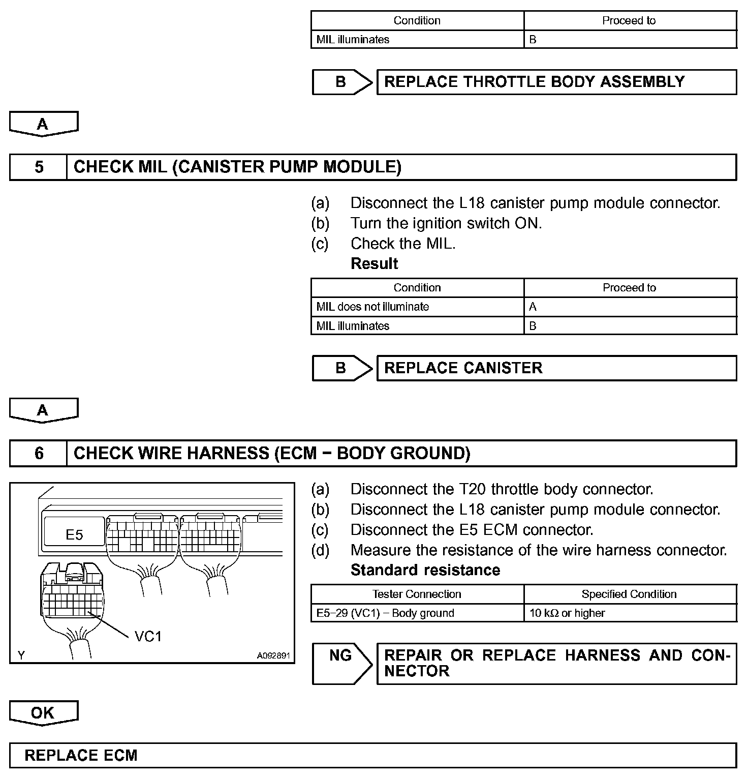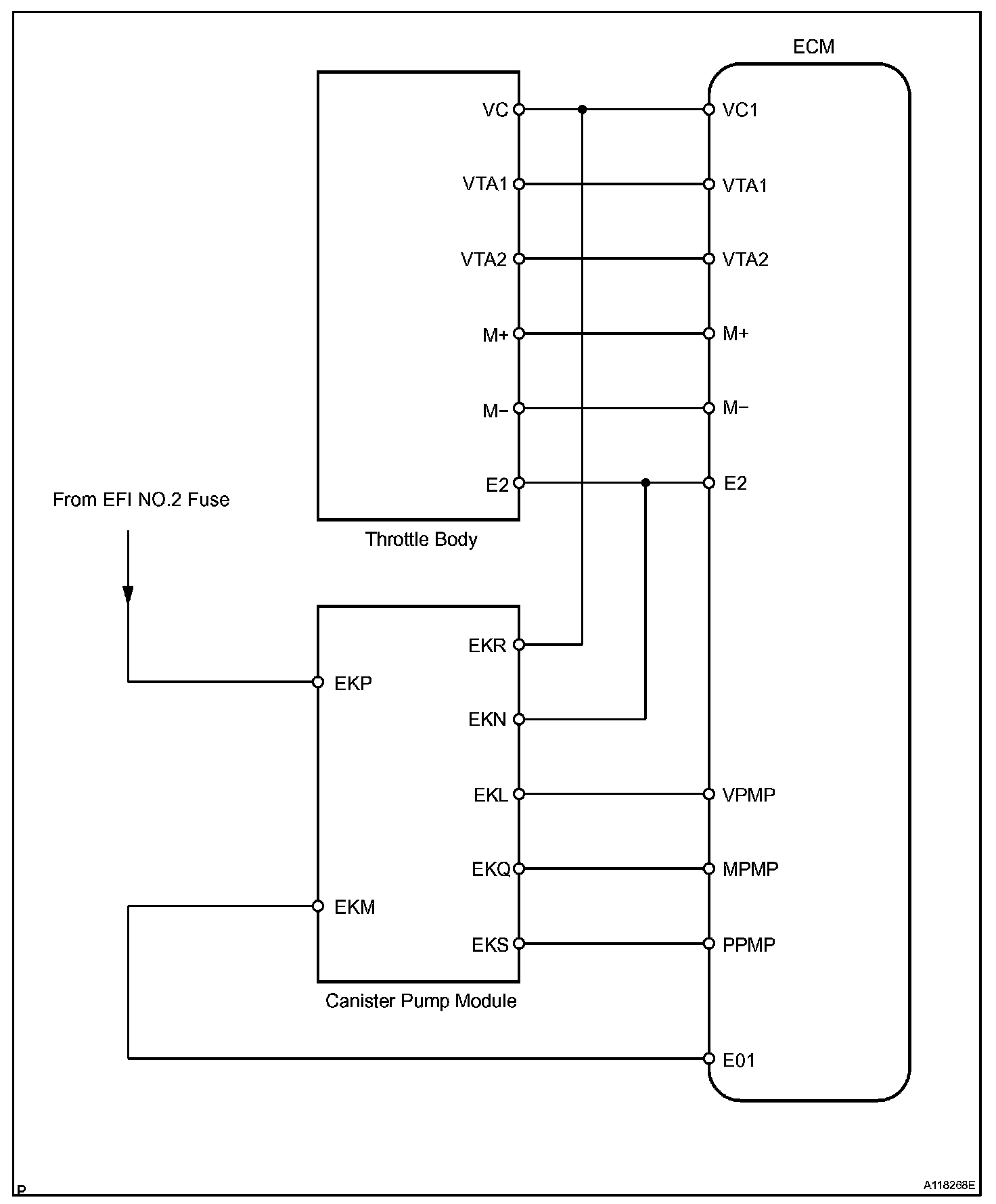 The VC voltage (5 V) is generated in the ECM. The voltage is used to supply power to the throttle position sensor, canister pump module, etc.
