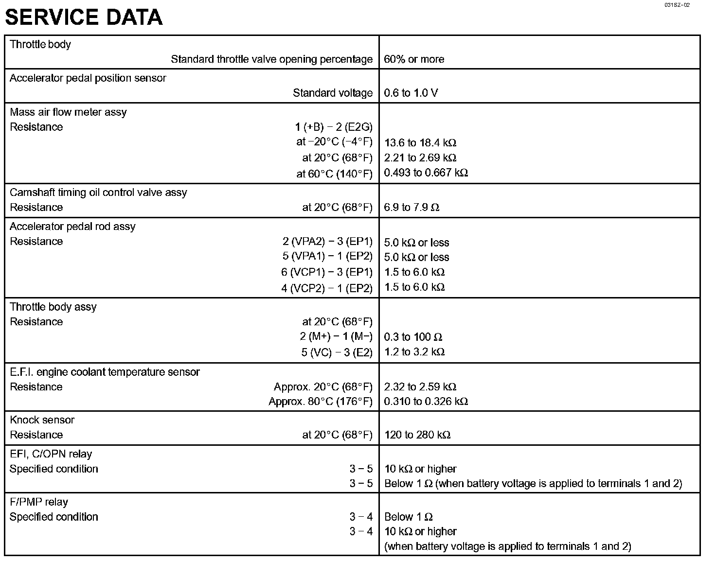 Engine Control System-Service Data: