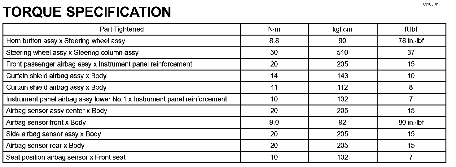 Supplemental Restraint System-Torque Specification: