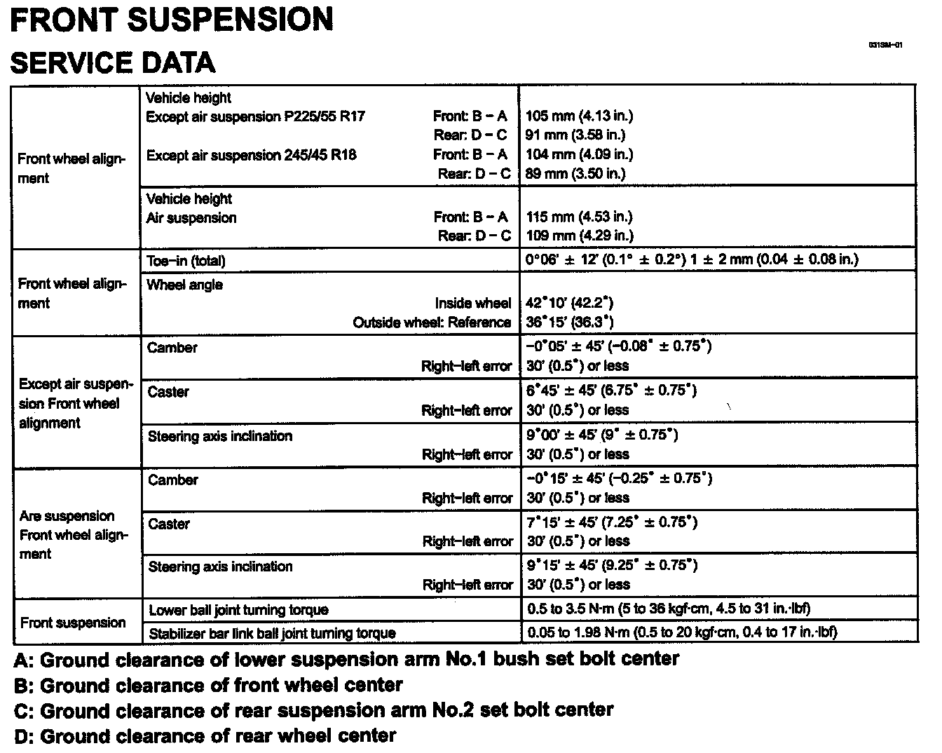 Front Suspension Specifications