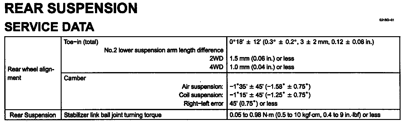 Rear Suspension Specifications