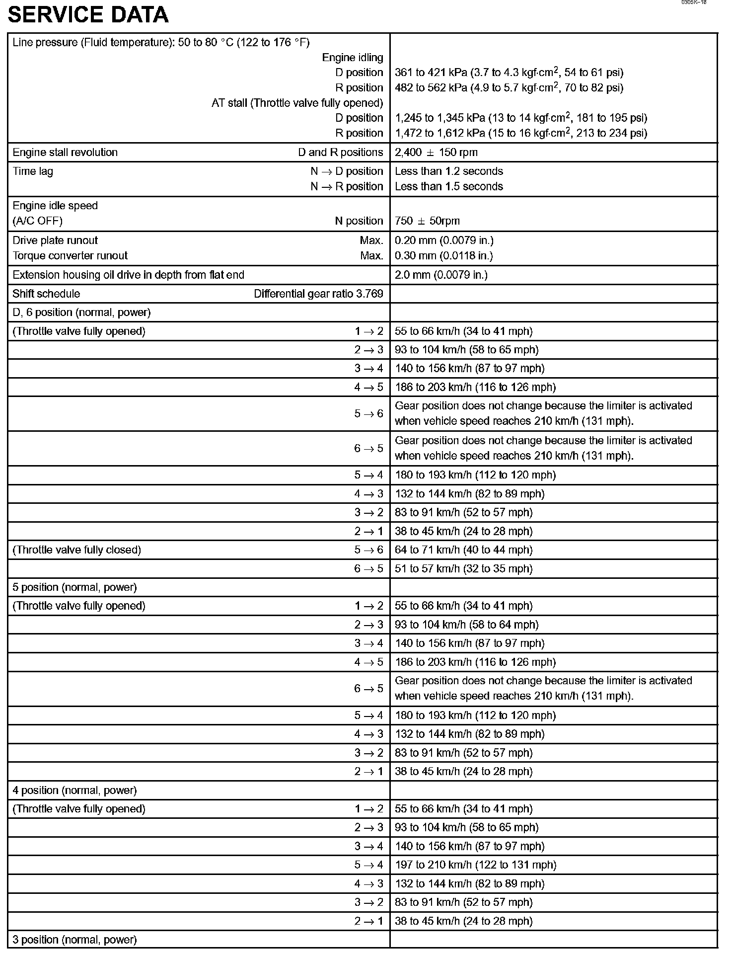 Automatic Transmission / Transaxle-Service Data (Part 2):