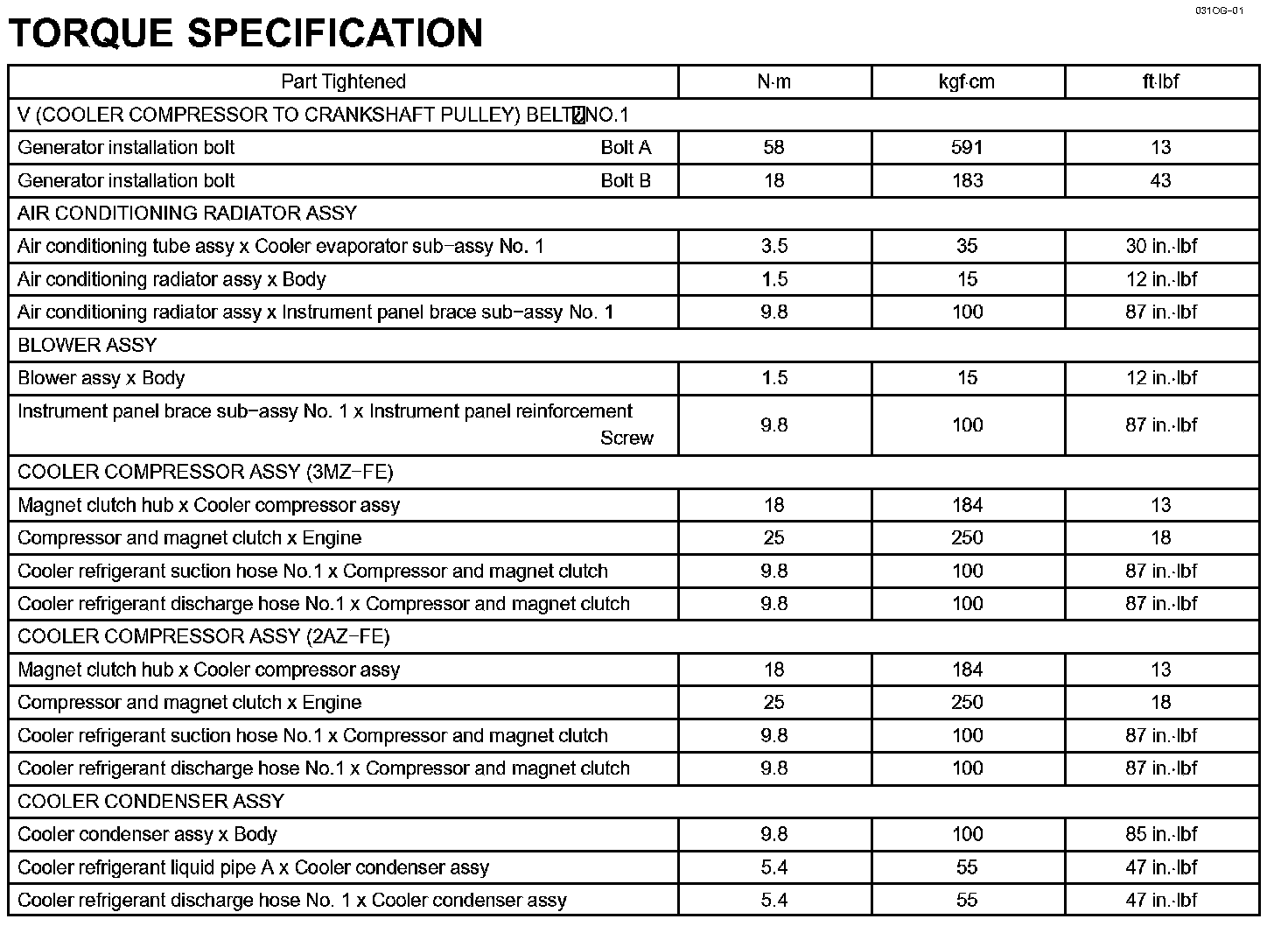 Heater & Air Conditioner-Torque Specification: