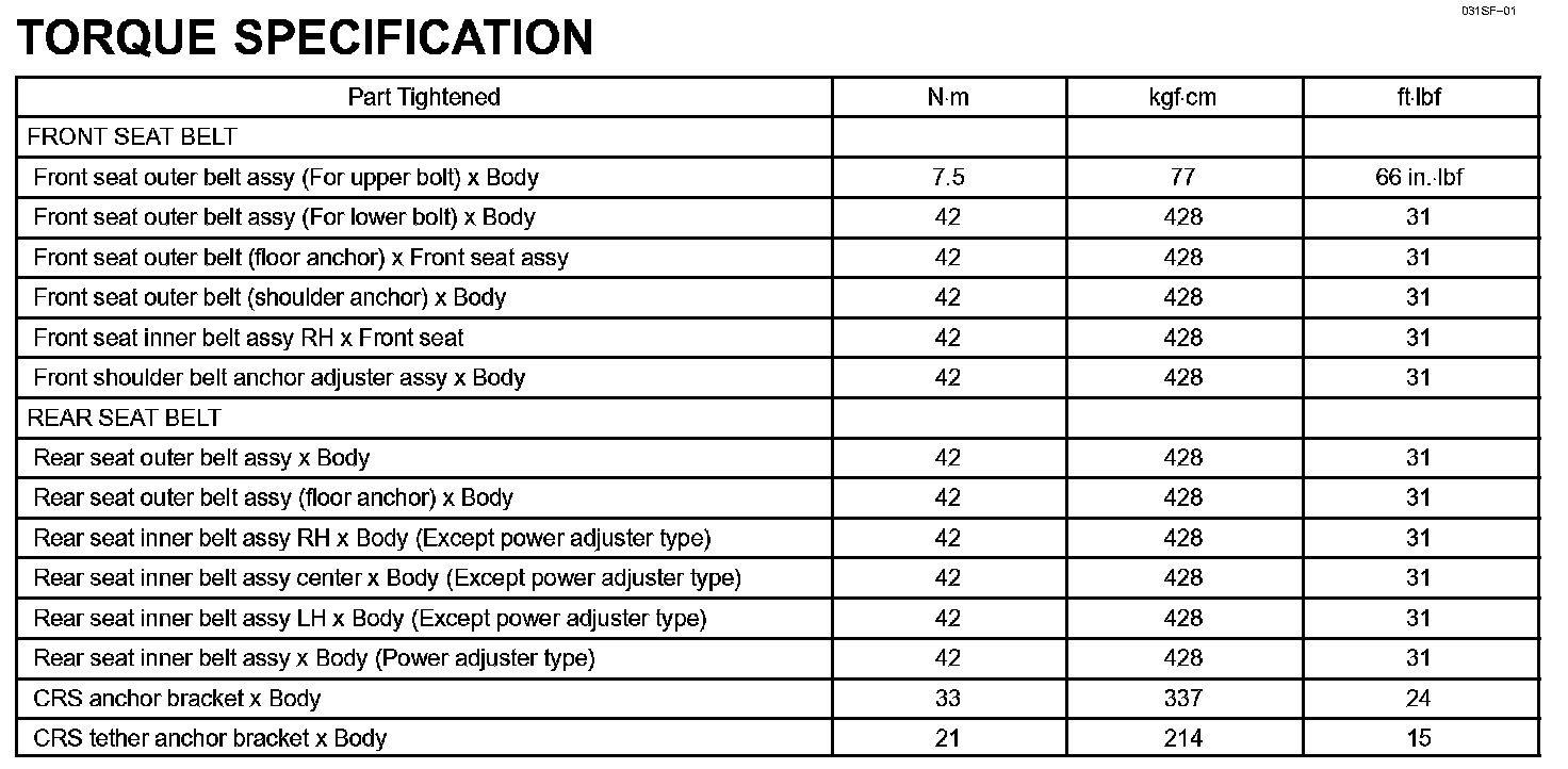 Seat Belt-Torque Specification: