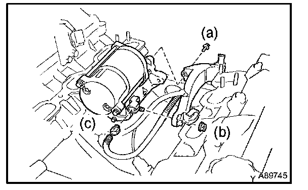 a. Remove the 2 bolts holding the starter to the cylinder block.