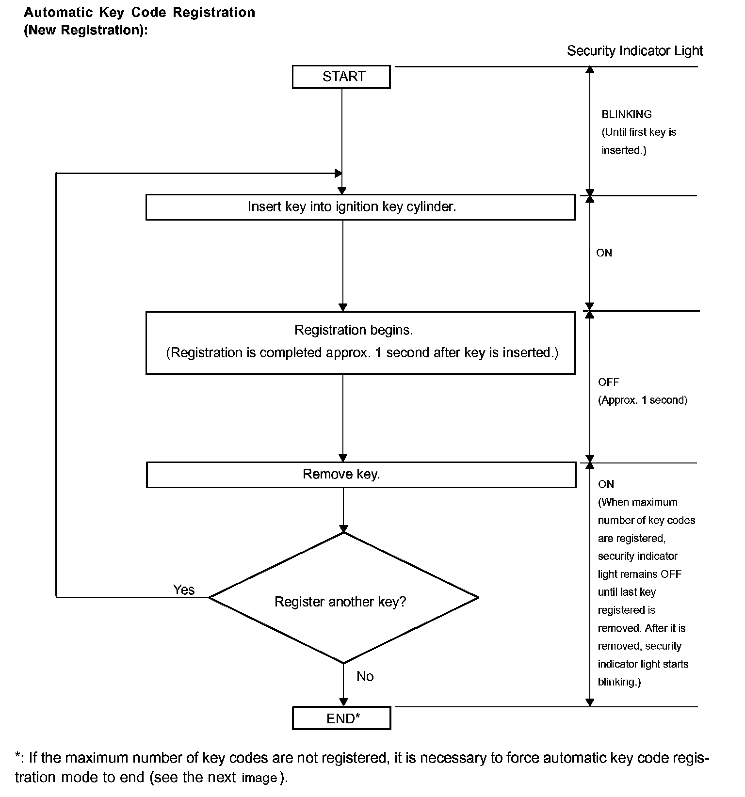 Automatic key code registration mode can be forced to end when at least 1 key code (immobilizer code) for the master key has been registered.