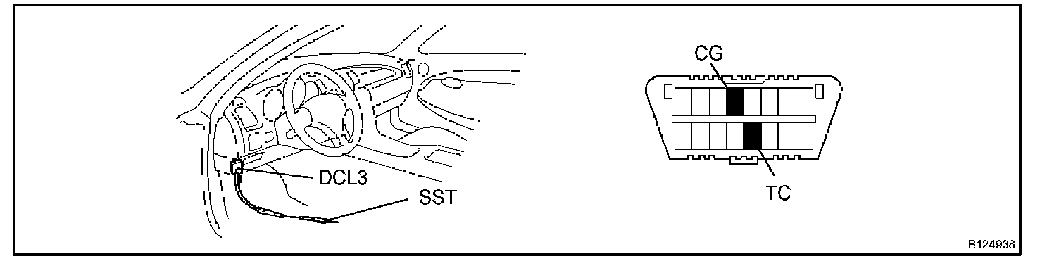 1. Using SST, connect terminals TC and CG of the DLC3.