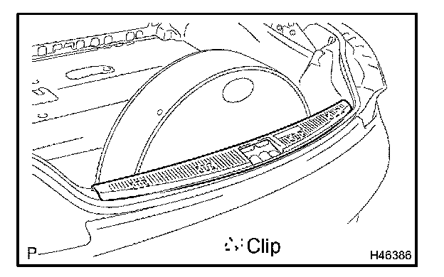 a. Using a screwdriver, detach the 4 clips and remove the rear floor finish plate.