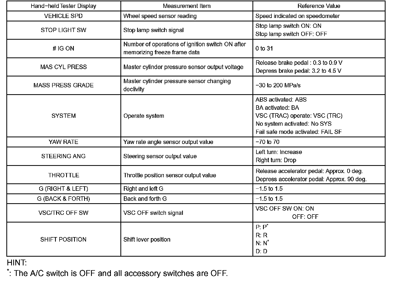 - When a DTC is detected or the ABS operates, the skid control ECU stores the current vehicle (sensor) state as freeze frame data.