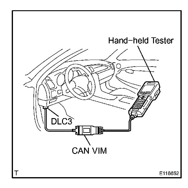 HINT: Connect the cable of the hand-held tester (CAN VIM) to the DLC3, turn the ignition switch ON and attempt to use the tester. If the screen displays UNABLE TO CONNECT TO VEHICLE, a problem may be on the vehicle side or tester side.