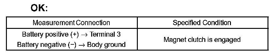 b. Apply battery voltage to the clutch and check operation of the clutch. If the result is not as specified, replace the clutch assy.