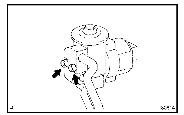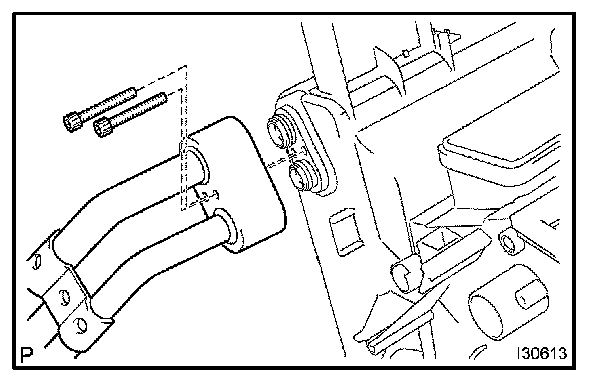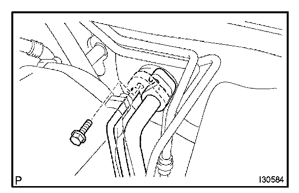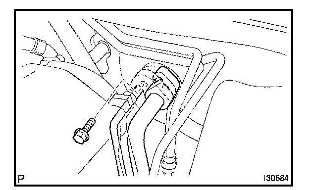 a. Using a 4 mm hexagon wrench, remove the 2 hexagon bolts and A/C tube.