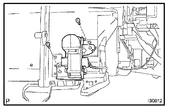 b. Remove the 2 screws, 3 nuts, bolt and A/C unit.