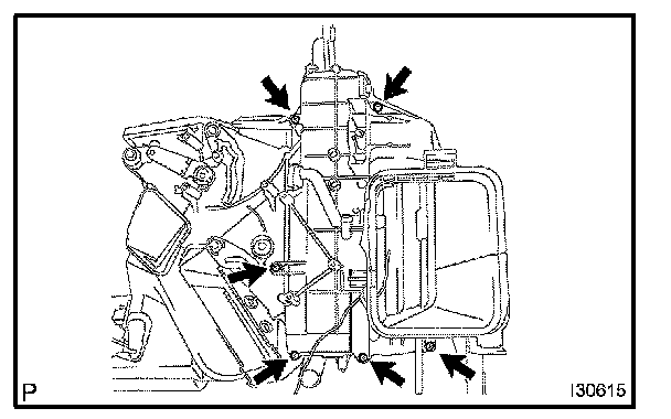 b. Remove the 2 bolts and heater bracket.