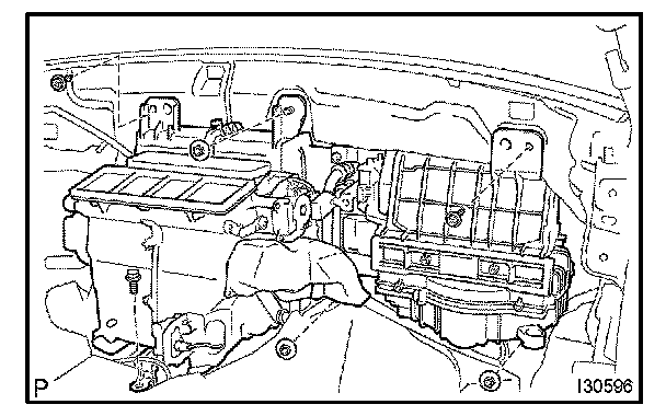 b. Remove the heater radiator unit from the A/C radiator.