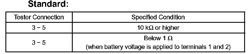 Measure the resistance of the relay. If the result is not as specified, replace the relay.