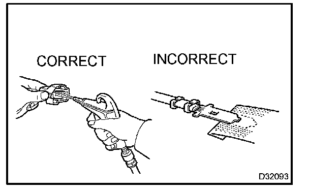 5. If checking a connector with a TOYOTA electrical tester, check the connector from the backside (harness side) using a mini test lead.