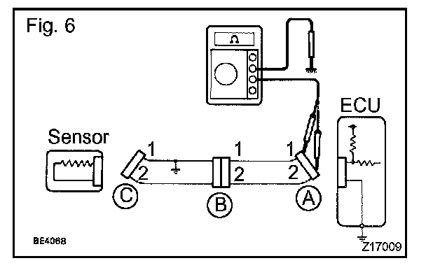 CHECK FOR SHORT CIRCUITSa. If the wire harness is ground shorted (Fig. 5), locate the section by conducting a resistance check with the body ground (below).