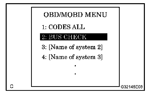 a. Select "BUS CHECK" from the "OBD/MOBD MENU" screen.