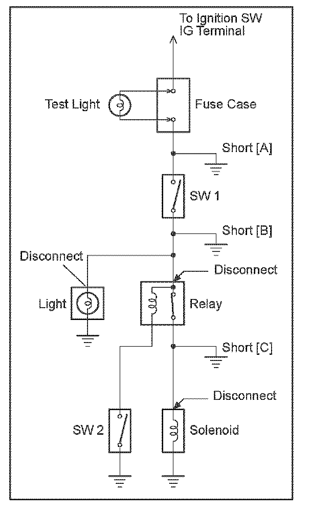 d. Disconnect and reconnect the connectors while watching the test light.