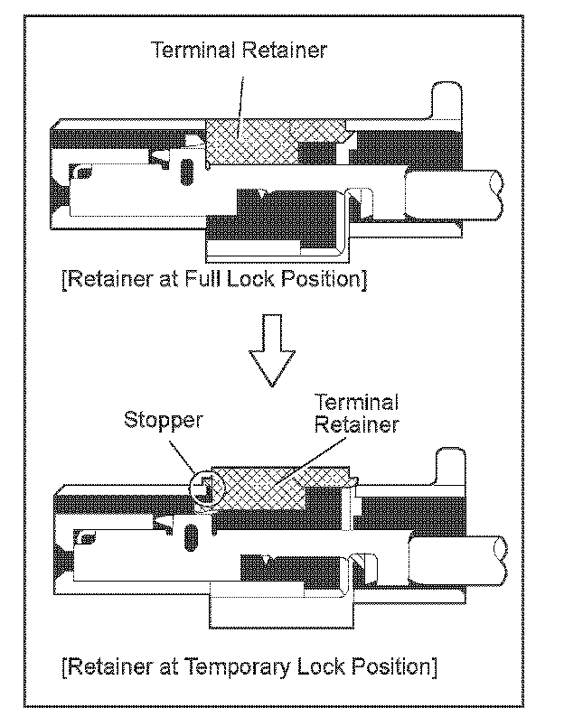 3. Insert the terminal with terminal retainer in the temporary lock position.