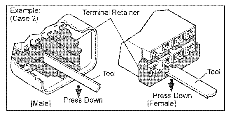 Type which cannot be pulled as far as Power Lock insert the tool straight into the access hole of terminal retainer as shown.