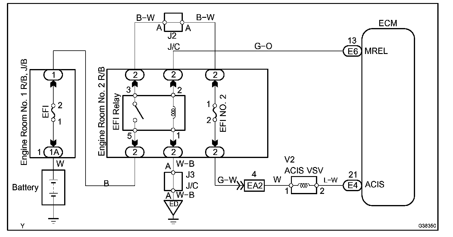 This circuit opens and closes the Intake Air Control Valve (IACV) in response to the engine load in order to increase the intake efficiency (ACIS: Acoustic Control Induction System).